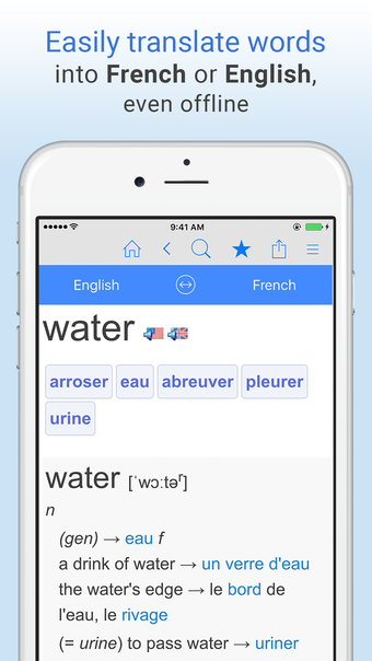 Les utilisateurs peuvent facilement basculer entre les directions de traduction d'un simple toucher et utiliser la recherche vocale pour des recherches rapides de mots. L'application propose des traductions hors ligne sans nécessiter de téléchargements supplémentaires et offre des fonctionnalités telles que des prononciations audio, la sauvegarde de signets et des options de recherche avancées. Avec une interface conviviale et aucune limitation d'essai, le Dictionnaire anglais-français est un outil précieux pour les apprenants en langues et les voyageurs.